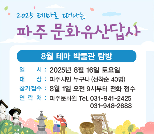 | 2025 테마로 떠나는 파주문화유산답사 8월 '테마 박물관 탐방' 참가자 모집 안내 | ||