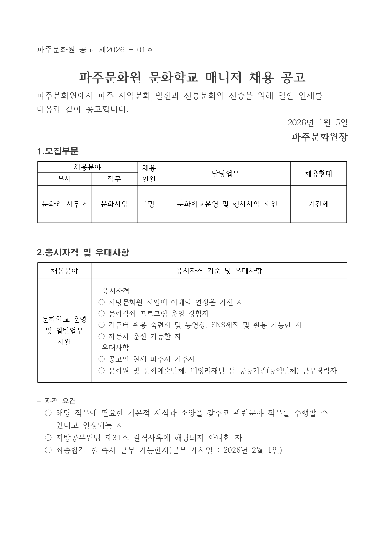 | [공지] 2026 파주문화원 문화학교 매니저 채용 공고 안내 | ||